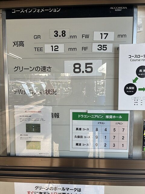 この日のグリーンスピードは8.5です。長浦→久保田コースをラウンドします。