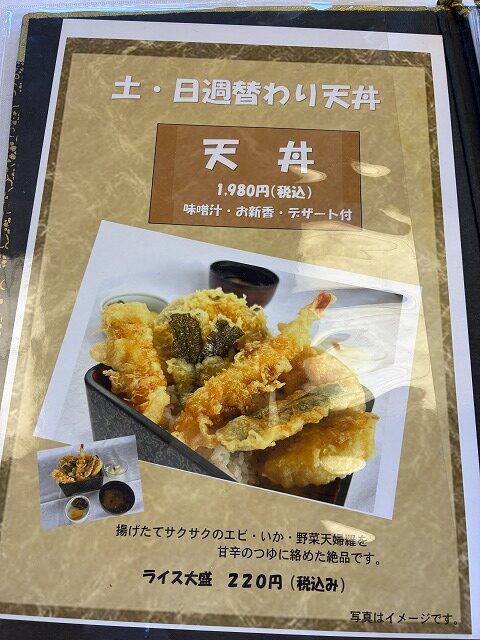 - 天ぷら蕎麦(天ぷら、炊き込みご飯、デザート付き) 1,540円