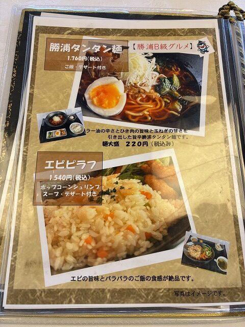 - 勝浦タンタン麺(ご飯、アイスクリーム付き) 1,600円
