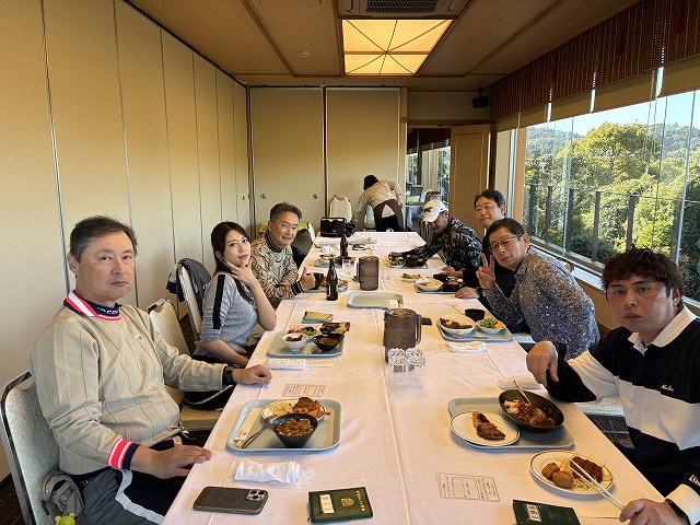 スタートの30分前にクラブハウス内に集合して、簡単な自己紹介をしてもらいました。その後、スタートホールのティーグランドの前で集合写真を撮ります♪